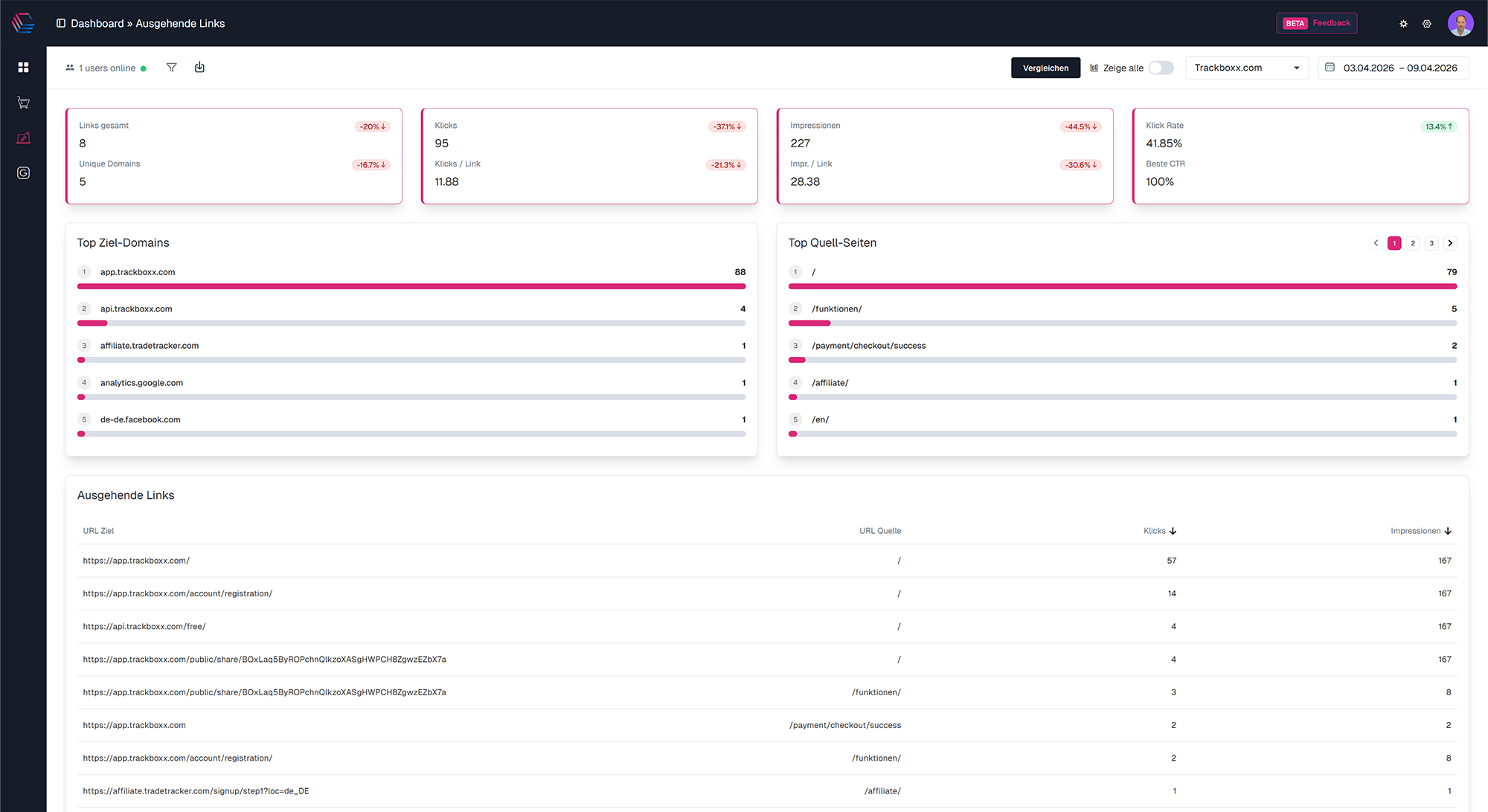 Das Trackboxx UTM-Tracking hilft Dir dabei, zu verstehen, welche Werbekampagnen (Banner-Ads, Social-Ads etc.) besonders erfolgreich sind. Ohne UTM-Parameter kannst Du beispielsweise lediglich sehen, dass Traffic von Facebook kommt. Durch die UTM-Parameter lässt sich in der Trackboxx nachvollziehen, welcher Post genau den Traffic verursacht. UTM-Tracking unterstützt Dich also bei der Konzeptionierung besserer Kampagnen. Mehr Infos erhältst Du im Helpcenter.